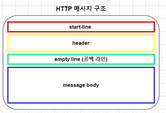- HTTP 메시지는 요청과 응답으로 분류되며, 기본적 구조는 아래와 같다.